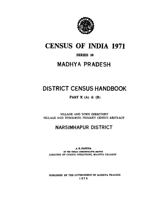 District Census Handbook, Narsimhapur, Part X (A) & X(B), Series-10 - Census 1971