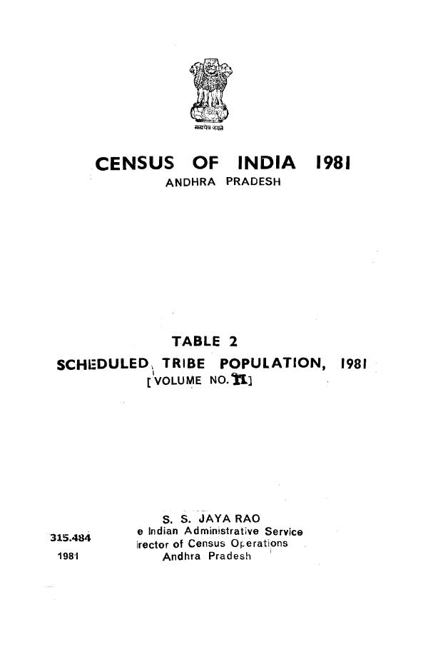 Scheduled Tribe Population, Table-2, Vol-II - Census 1981
