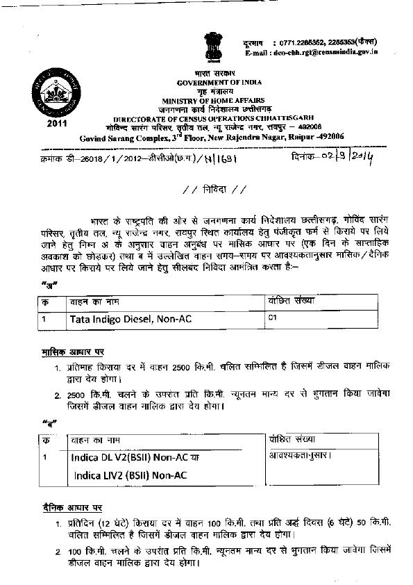 Tender for Vehicle [DCO- Chhattisgarh]