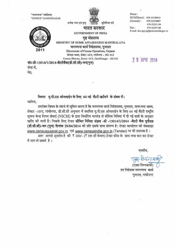 Tender for UPS Battery [DCO - Gujrat]