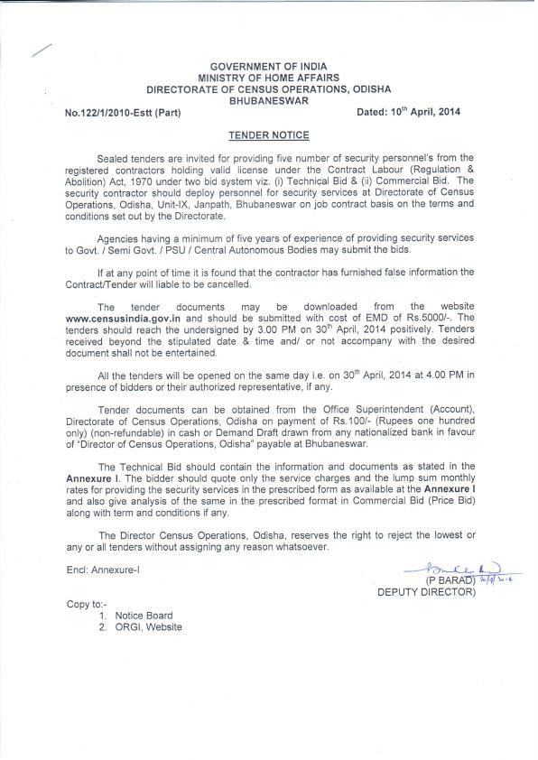 Tender Notice for Security Services [DCO- Odisha]