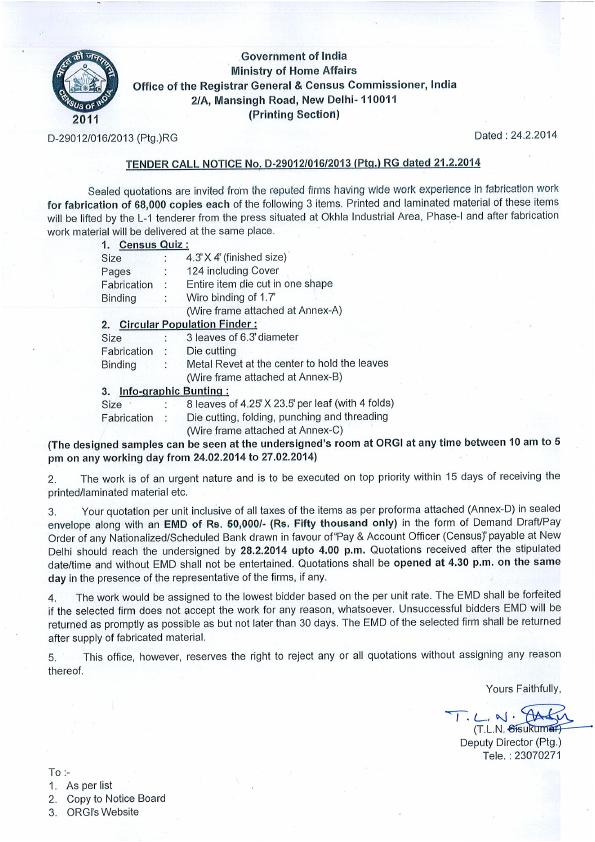 Tender for fabrication of 68,000 Copies [ORGI-New Delhi]