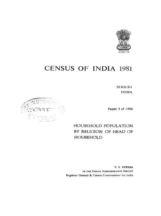 Household Population by Religion of Head of Household, Series-1, Paper 3 of 1984, India - Census 1981