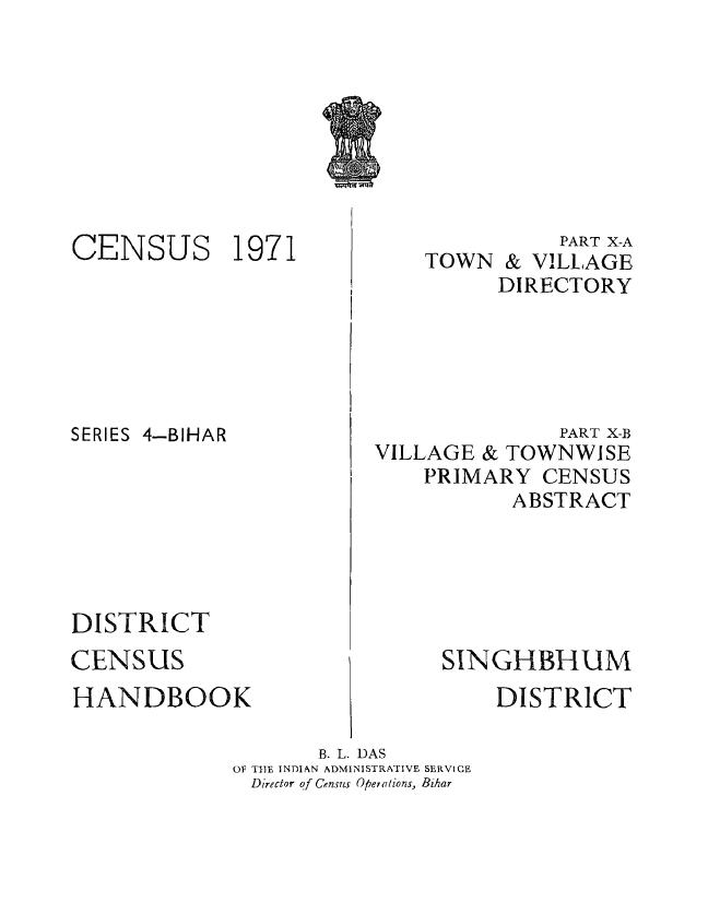 Village & Townwise Primary Census Abstract, Part X-B, Singhbhum District, Series-4, Bihar - Census 1971