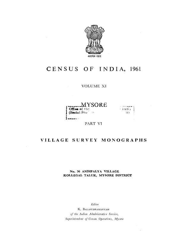 Village Survey Monographs, Andipalya, No-36, Part VI, Vol-XI - Census 1961