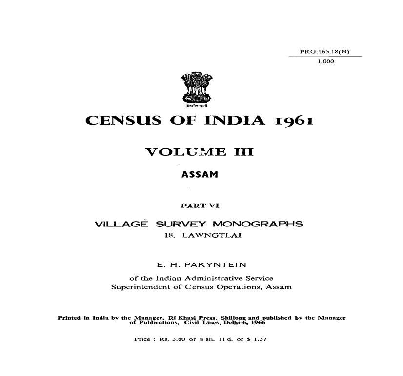 Village Survey Monographs, 18-Lawngtlai, Part VI, Vol-III, Assam - Census 1961