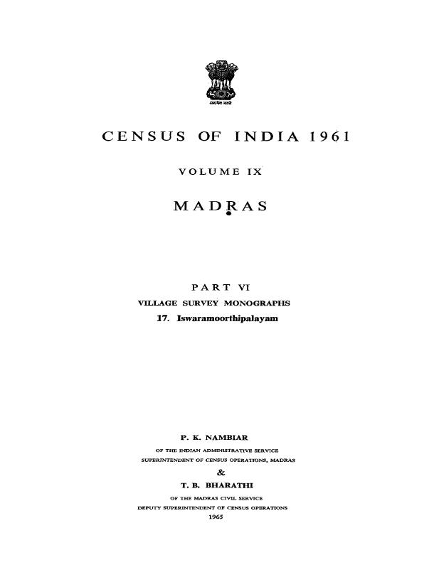 Village Survey Monographs, 17 Iswarmoorthipalayam, Part VI, Vol-IX - Census 1961