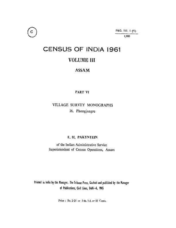 Village Survey Monographs, 16 Phongiangre, Part VI, Vol-III, Assam - Census 1961