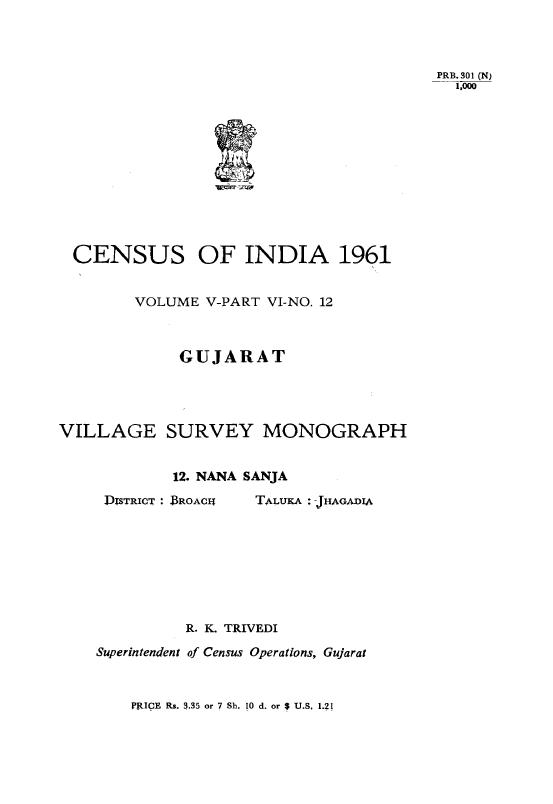 Village Survey Monograph, Nana Sanja, Part VI, No-12, Vol-V - Census 1961