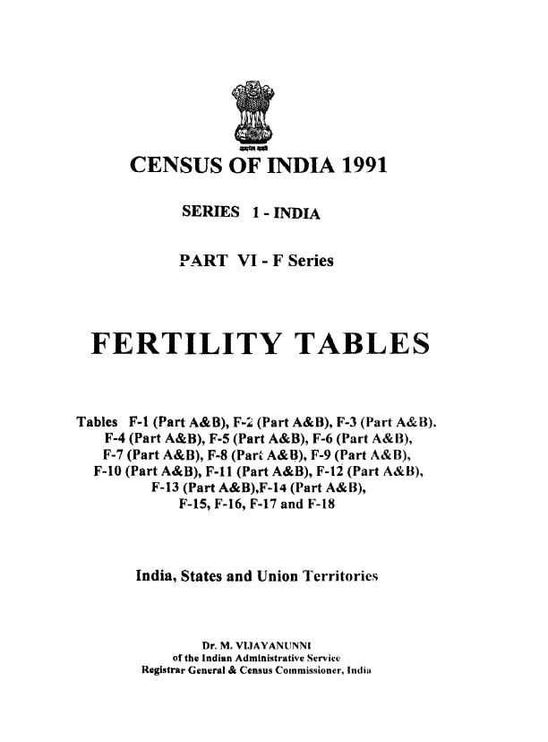 Fertility Tables, Part VI-F Series, Series 1, India - Census 1991