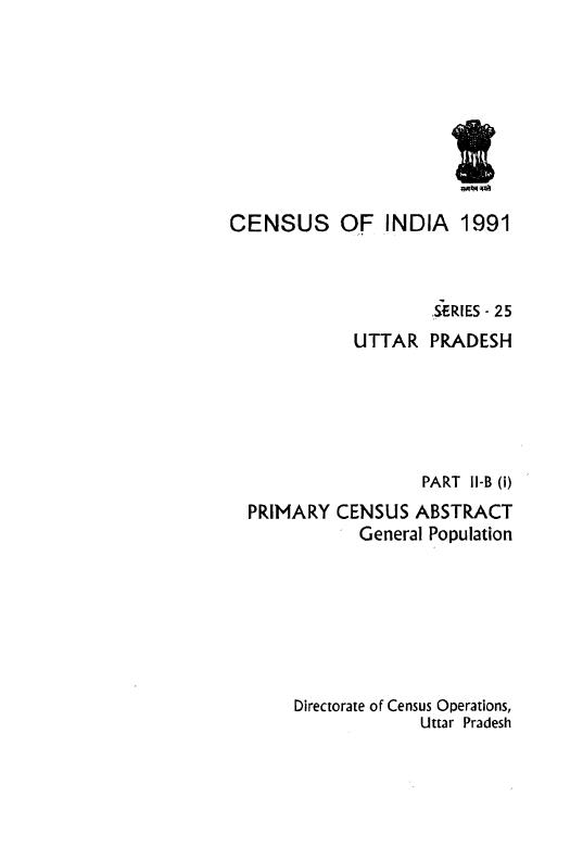 Primary Census Abstract, General Population, Part II-B (i), Series-25, Uttar Pradesh - Census 1991