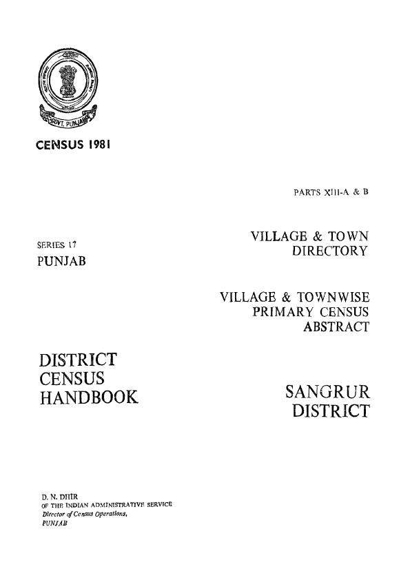District Census Handbook, Sangrur, Part XIII-A & B, Series-17, Punjab - Census 1981