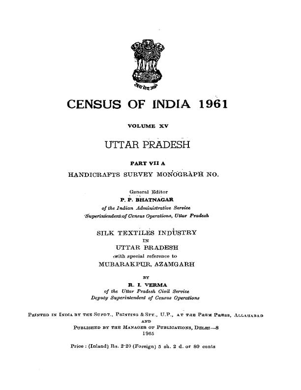 Handicrafts Survey Monograph No-7, Silk Textiles Industry Uttar Pradesh, Part VII-A, Vol-XV, Uttar Pradesh - Census 1961