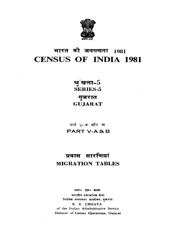 Migration Tables, Part V-A & B, Series-5 - Census 1981