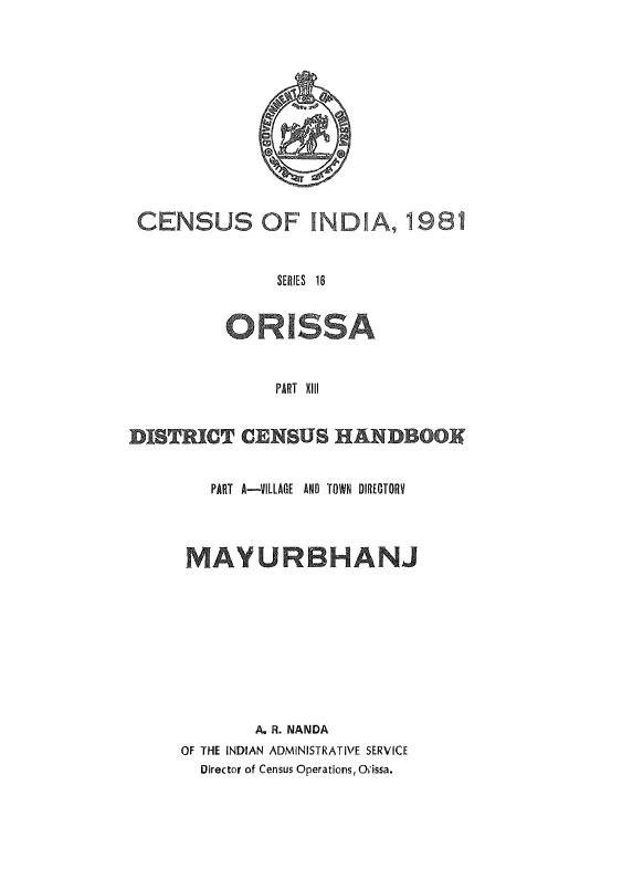 District Census Handbook, Mayurbhanj, Part-A, Series-16, Orissa - Census 1981