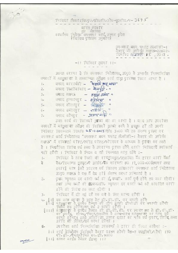 Tender for the videography of survey of the mother tongue in india under 12th five year scheme(DCO-UP)