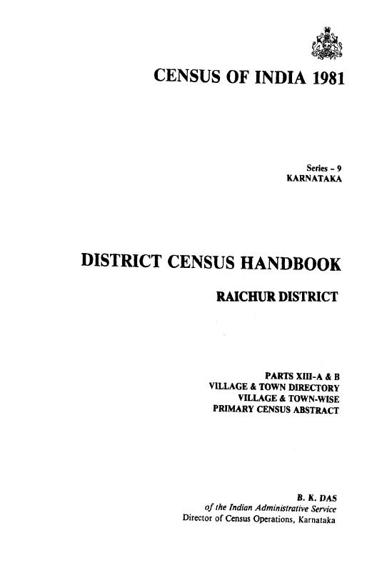 District Census Handbook, Raichur, Part XIII-A & B, Series-9 - Census 1981