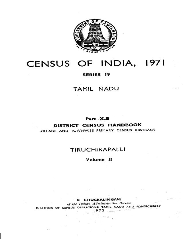 District Census Handbook, Tiruchirapalli, Part X-B, Vol-II, Series-19 - Census 1971