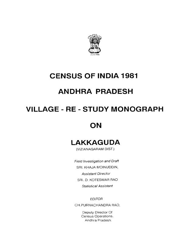 Survey Report on Village, Lakkaguda, Vizianagaram, Part X-C, Series-2 - Census 1981