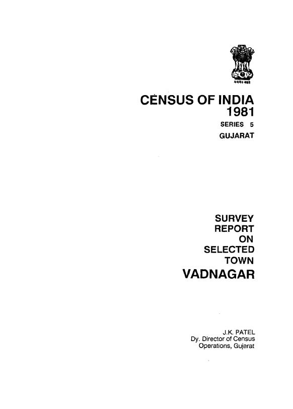 Survey Report on Selected Town Vadnagar, Part-X-B (2), Series-5 - Census 1981