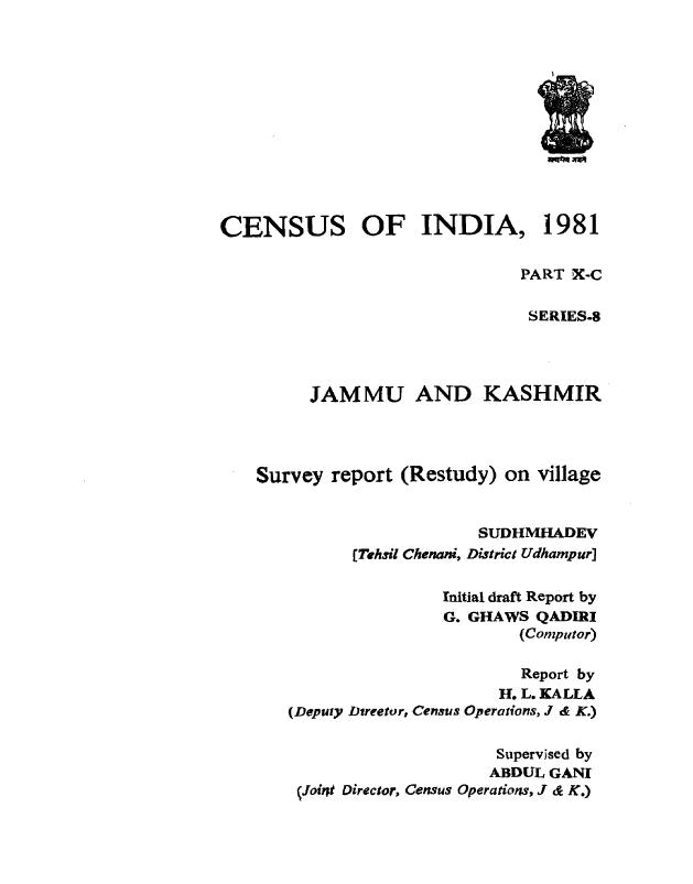 Survey Report (Restudy) on Village, Part X-C, Series-8 - Census 1981
