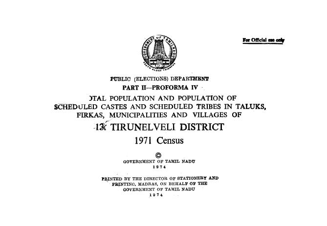 Total Population and Population of Scheduled Castes and Scheduled Tribes in Taluks, Firkas, Municipalities and Villages of 13 Tirunelveli - Census 1971