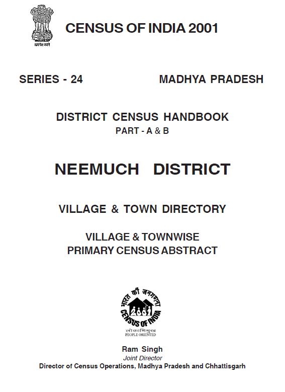 Census of India 2001 - Series 24 - Madhya Pradesh - District Census Handbook, Part A & B - Neemuch