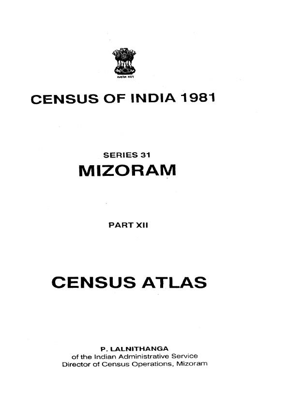Census Atlas, Part XII, Series-31, Mizoram - Census 1981