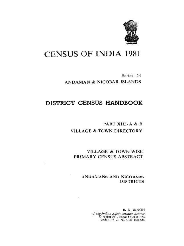 District Census Handbook, Andamans and Nicobars District, Part XIII-A & B, Series-24 - Census 1981