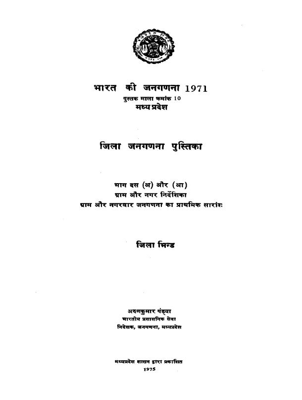 District Census Handbook, Bhind, Parts X (A) & X (B), Series-10 - Census 1971