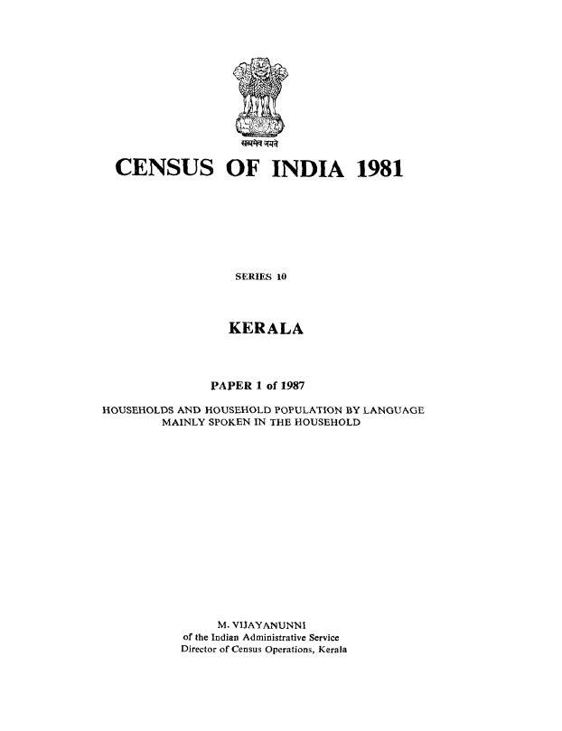 Household and Household Population by Language Mainly Spoken in the Household, Series-10 - Census 1981