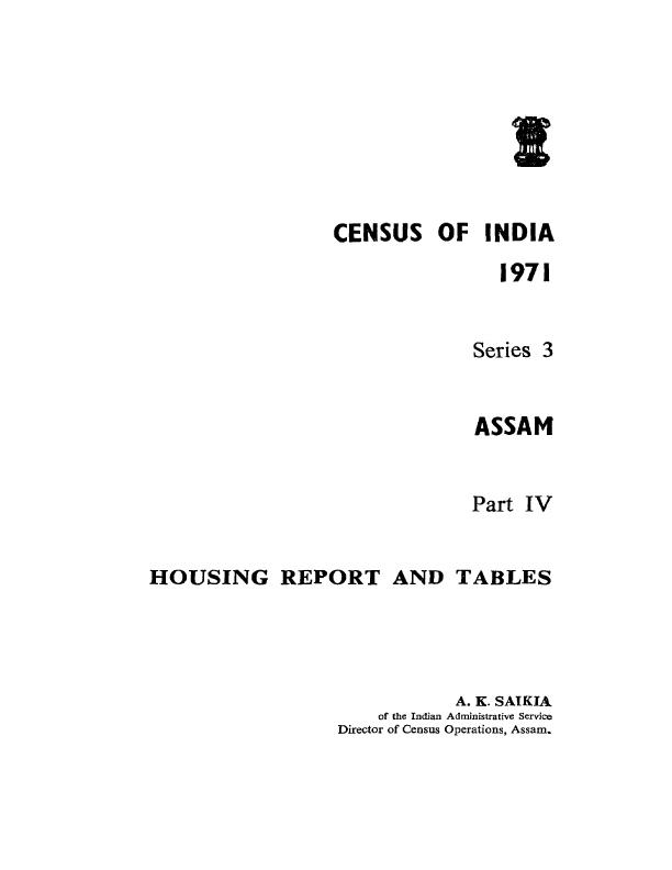Housing Report and Tables, Part IV, Series-3, Assam - Census 1971