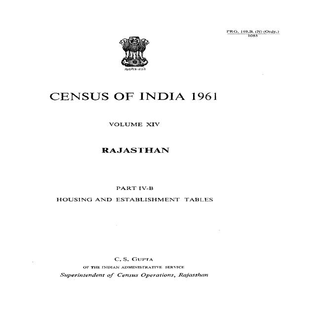 Housing and Establishment Tables, Part IV-B, Vol-XIV, Rajasthan - Census 1961