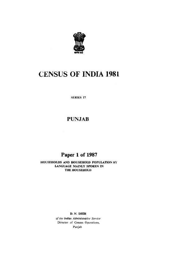 Households and Household Population by Language Mainly Spoken in the Household , Series-17, Punjab - Census 1981