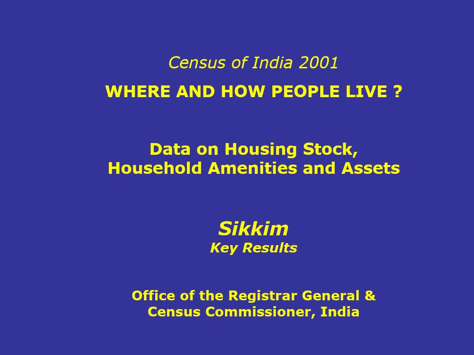 Census of India 2001 - Where and How People Live? Data on Housing Stock, Household Amenities and Assets - Sikkim Key Results