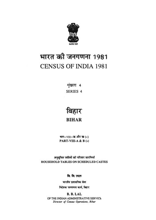 Household Tables on Scheduled Castes, Part-VIII-A & B (v), Series-4, Bihar - Census 1981
