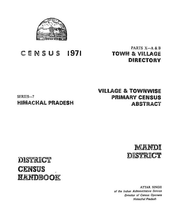 Village & Townwise Primary Census Abstract, Mandi, Part-X-A & B, Series-7, Himachal Pradesh - Census 1971