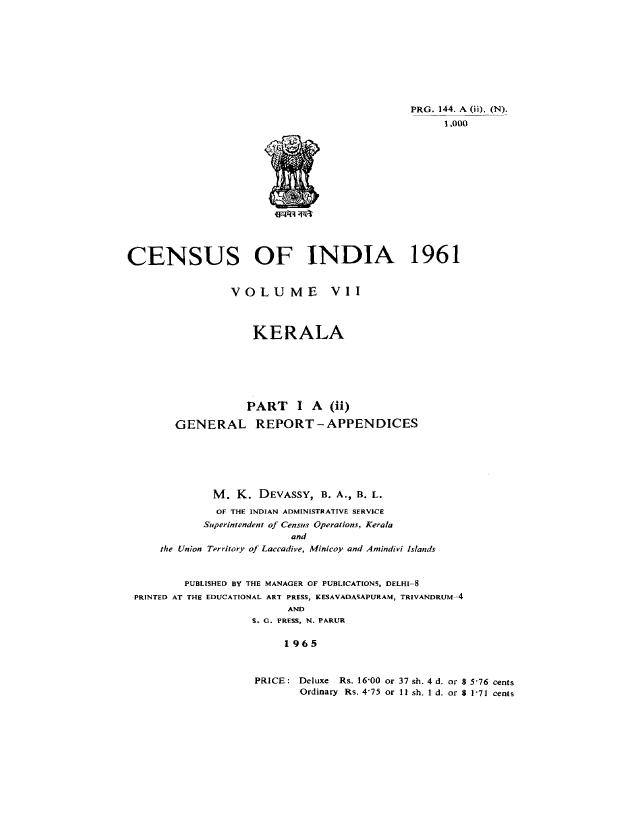 General Report-Appendices, Part I A (ii), Vol-VII - Census 1961