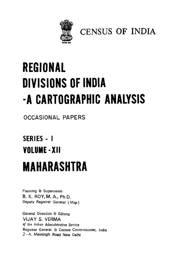 Regional Divisions of India A Cartographic Analysis, Vol-XII, Series-I - Census 1981