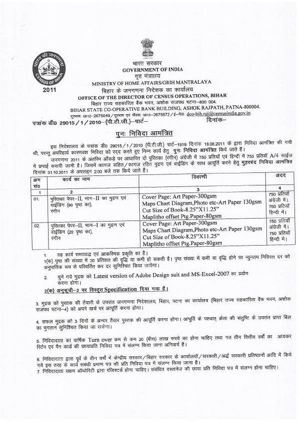 Re-Tender for Printing of Paper -II (DCO - Bihar)