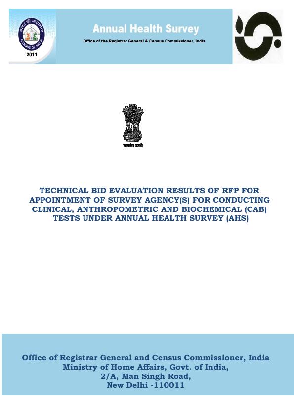 Results of Technical Evaluation of bids for appointment of Survey Agencies for conducting CAB tests and opening of the financial bids ( ORGI-New Delhi ) )