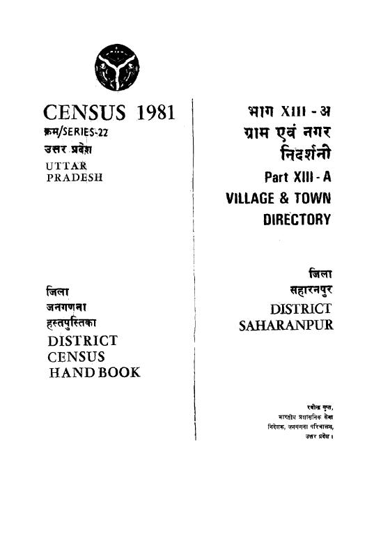 District Census Handbook, Saharanpur, Part XIII-A, Series-22, Uttar Pradesh - Census 1981