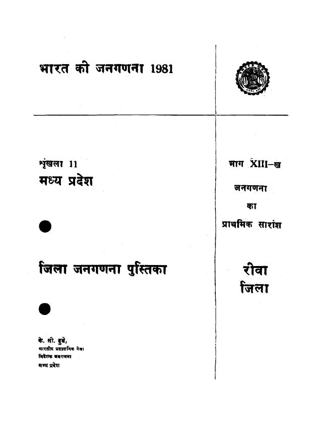 District Census Handbook, Rewa, Part XIII-B, Series-11 - Census 1981