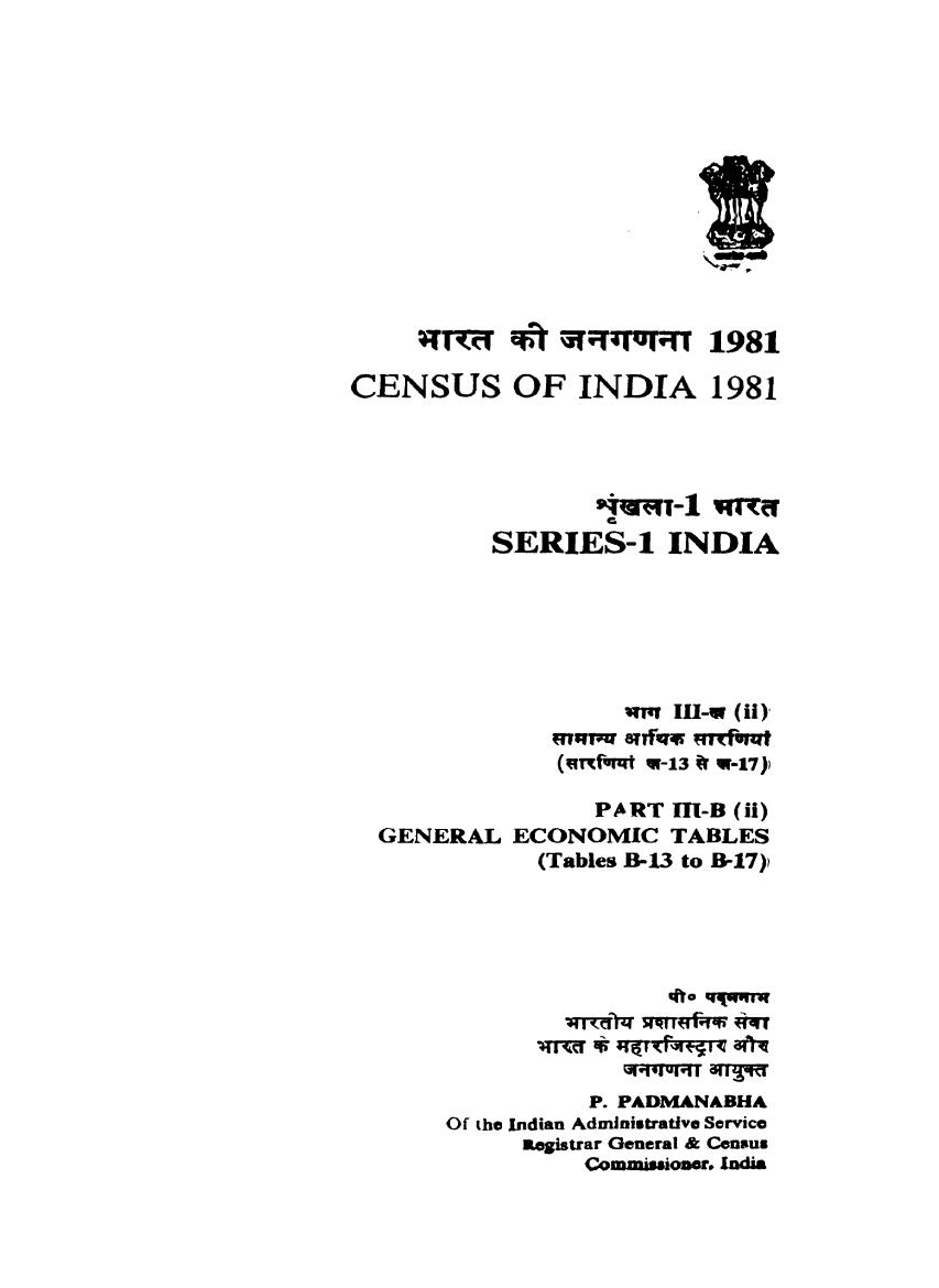 General Economic Tables, Part III-B (ii), Series-1, India - Census 1981
