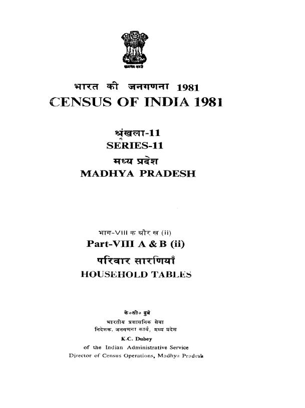 Household Tables, Part-VIII A & B (ii), Series-11 - Census 1981