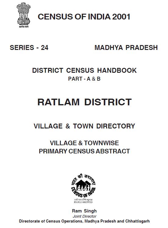 Census of India 2001 - Series 24 - Madhya Pradesh - District Census Handbook, Part A & B - Ratlam