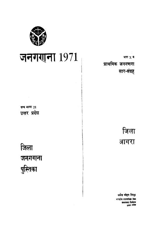 District Census Handbook, Agra, Part X-B, Series-22, Uttar Pradesh - Census 1971