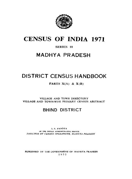 District Census Handbook, Bhind, Parts X (A) & X5(B), Series-10 - Census 1971