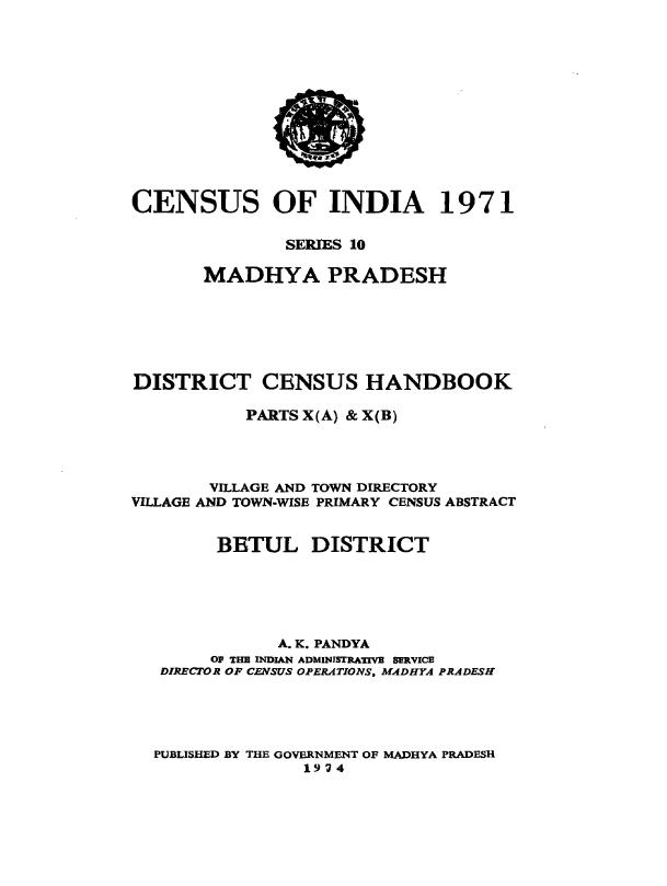 District Census Handbook, Betul, Parts X (A) & X(B), Series-10 - Census 1971