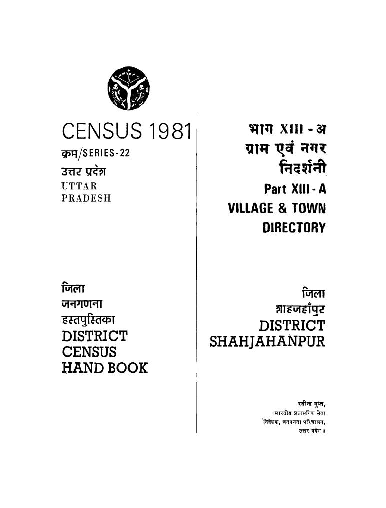 District Census Handbook, Shahjahanpur, Part XIII-A, Series-22, Uttar Pradesh - Census 1981